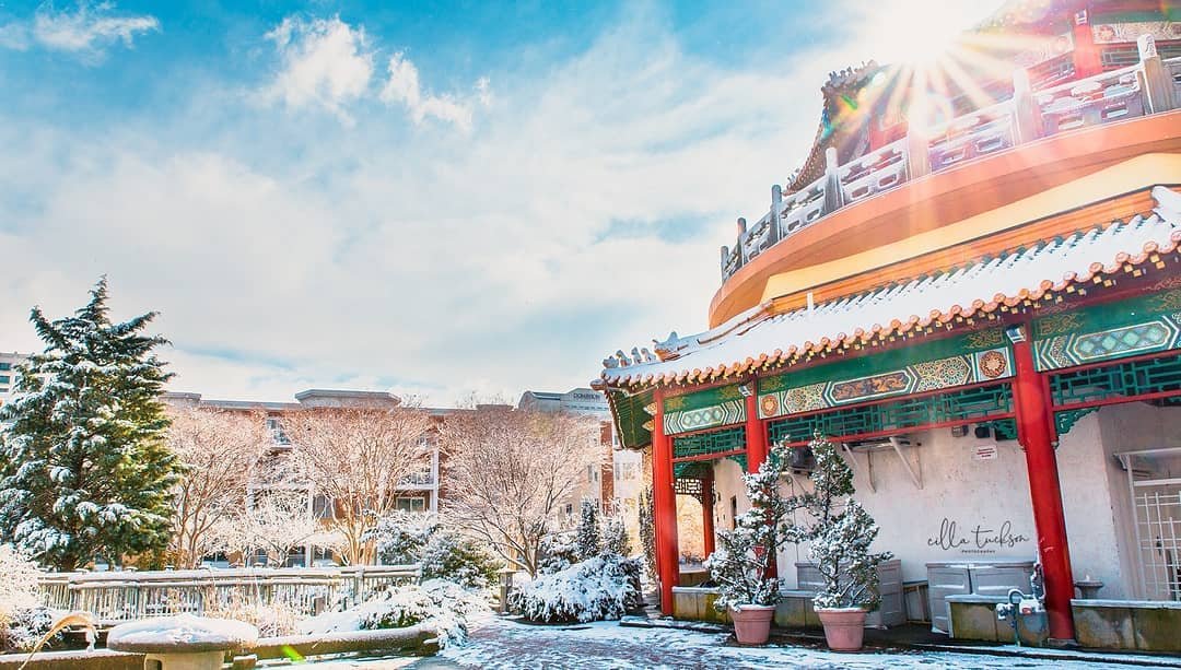 For a quieter experience, head west into Historic Freemason District, one of Norfolk’s oldest neighborhoods. The cobblestones, historic row houses, and waterfront homes create a classic holiday atmosphere. From there, continue to the Pagoda and loop the small pond as reflections of the seasonal lights ripple across the water.