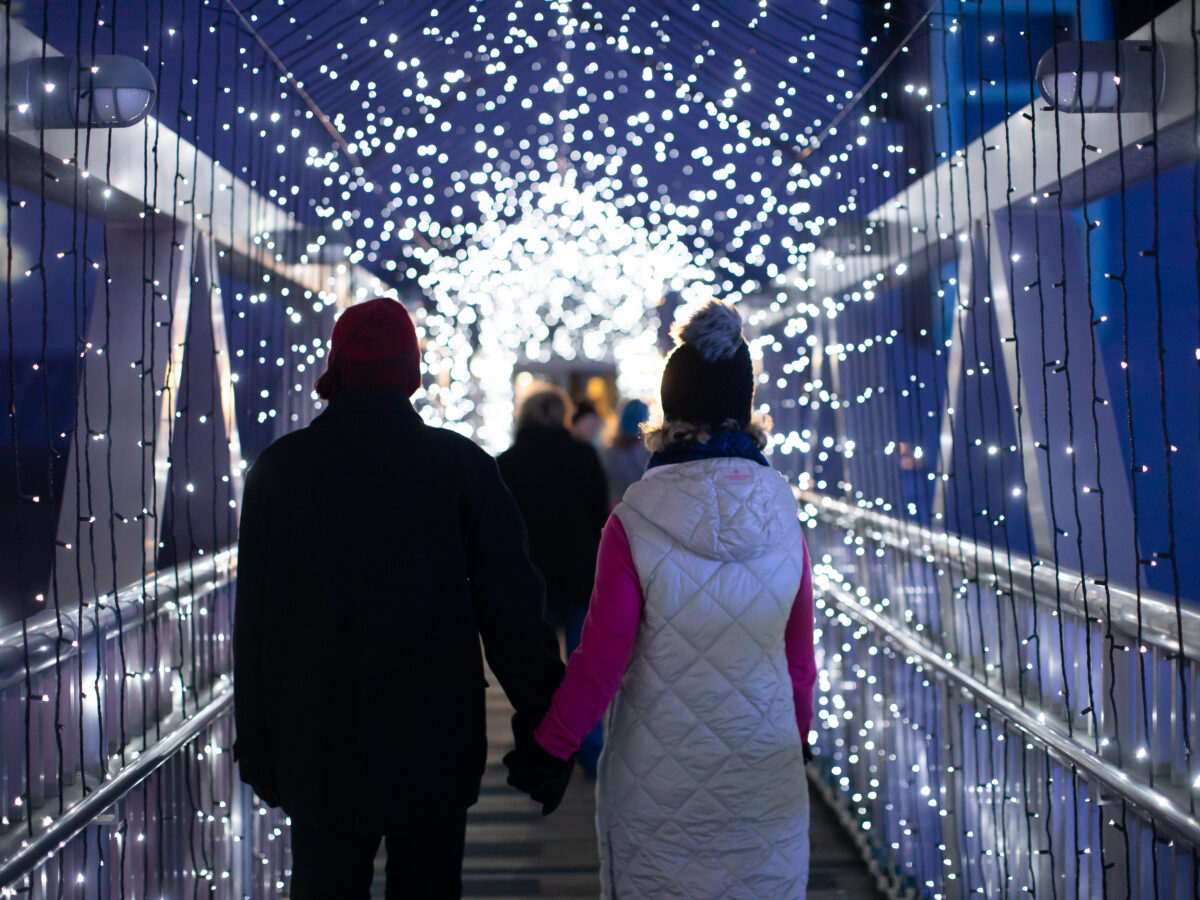 The new riverfront experience stretches from the Pagoda to Nauticus with nearly two million lights, weaving through nearby condominiums and Trex decks before drawing guests into Town Point Park. Tall Christmas trees will line the water, with programmable lights glowing in blue with red and green accents. Music will drift through the park, inviting visitors to take a wintry stroll. And best of all, it’s free to enjoy, no ticket required.