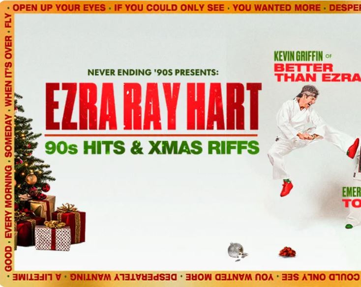Ezra Ray Hart will soundtrack the holidays in 2025 like only they can. The trio of multiplatinum iconic rock frontmen—Mark McGrath of Sugar Ray, Kevin Griffin of Better Than Ezra, and Emerson Hart of Tonic—will canvas the United States on the 90s Hits and Xmas Riffs tour, rolling through major markets coast-to-coast for 20 very special shows. It notably marks the collective’s first headline run as Ezra Ray Hart and their first-ever holiday jaunt.
